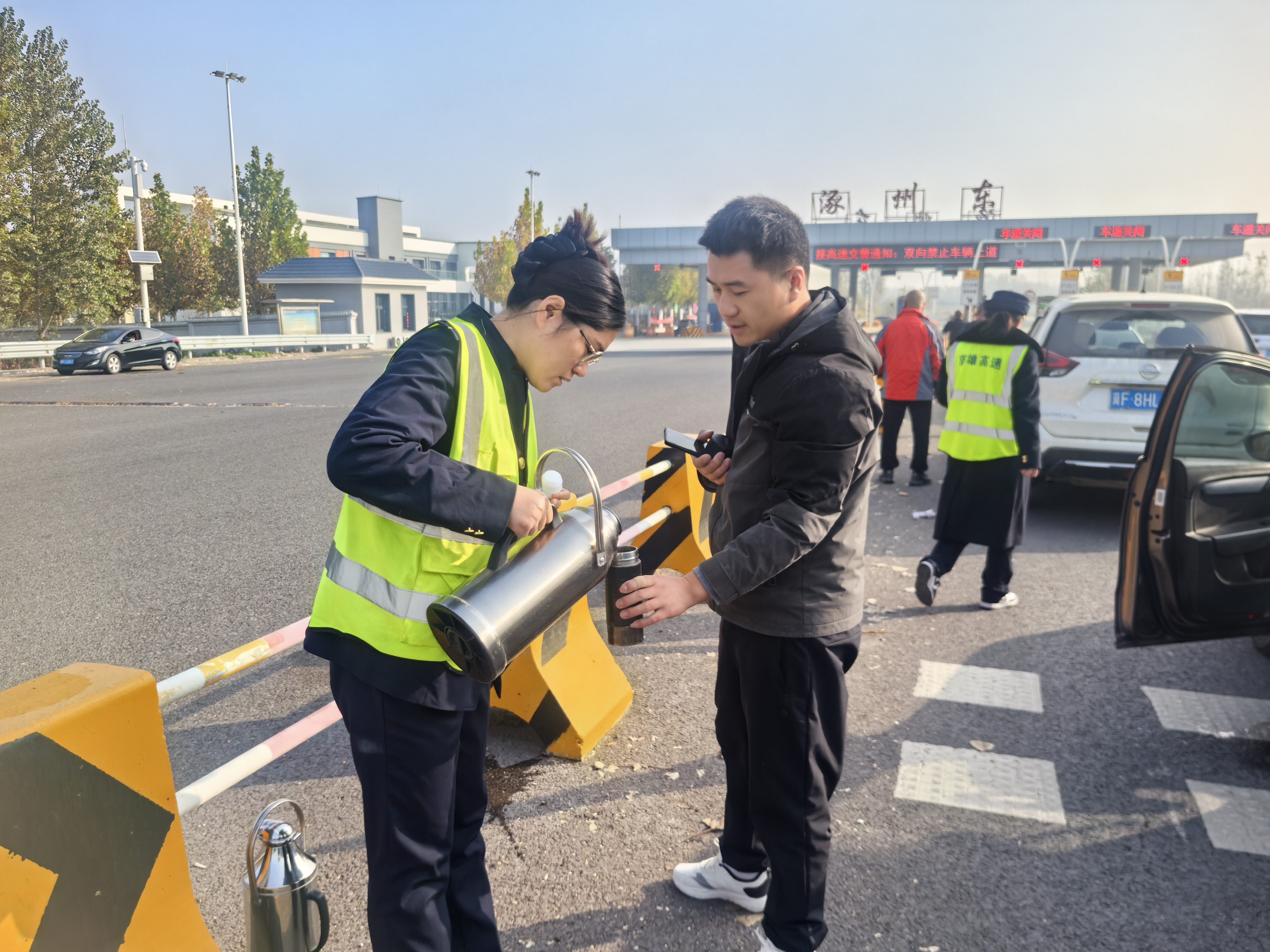 “太感谢你了,你们服务态度真好,为你们的服务点赞。”一杯杯热腾腾的开水,一句句暖心的问候,一条条精准的路线指引......天气虽然寒冷,但工作人员的热情服务和温暖相伴,让司乘人员的心里充满暖意。