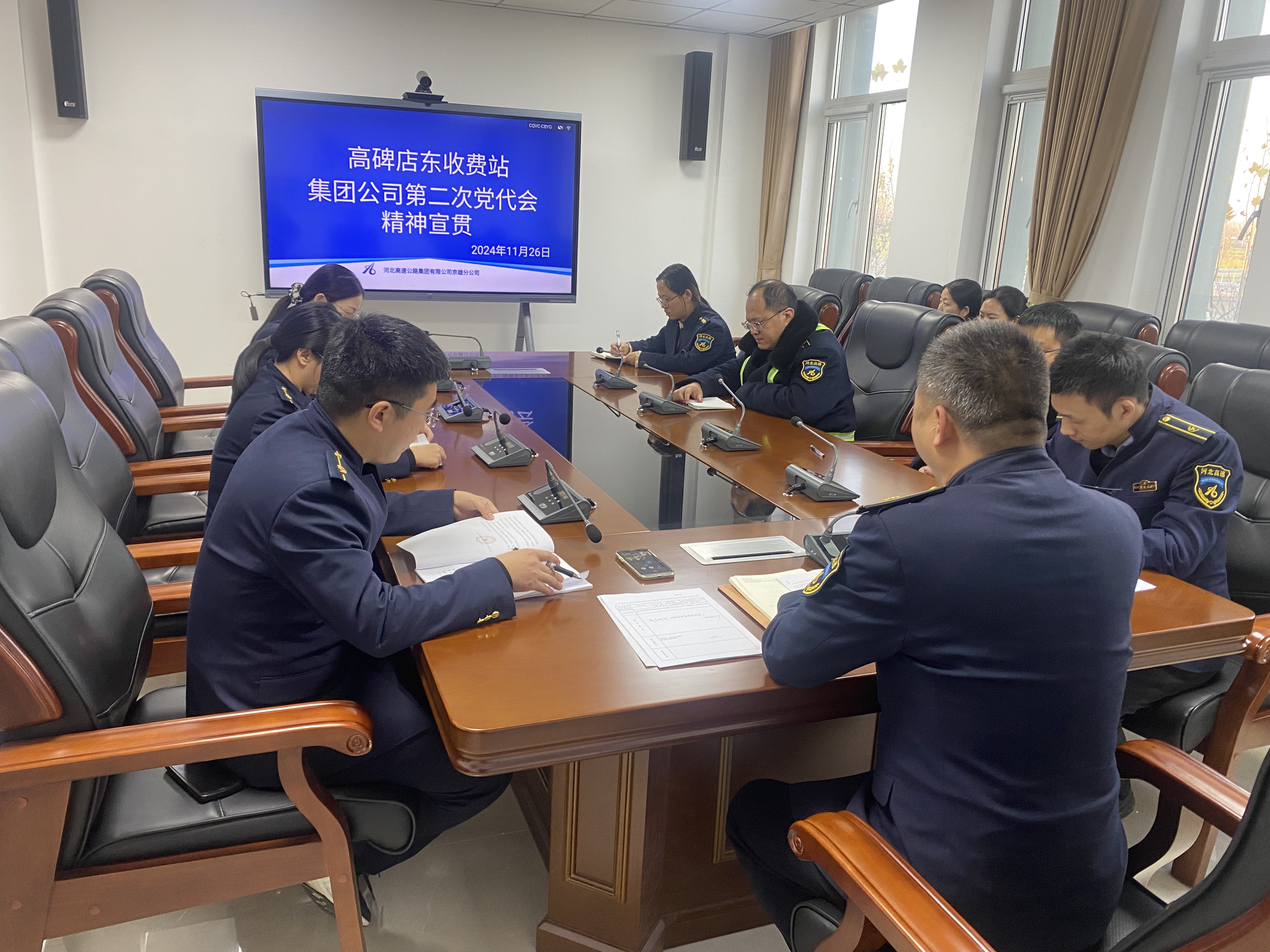 11月26日,高碑店东收费站召开学习集团公司第二次党代会精神宣贯会。切实将集团公司第二次党代会精神学习好、宣传好、贯彻好,引导广大干部职工勇担职责使命,高质量谱写高速事业发展的崭新篇章。