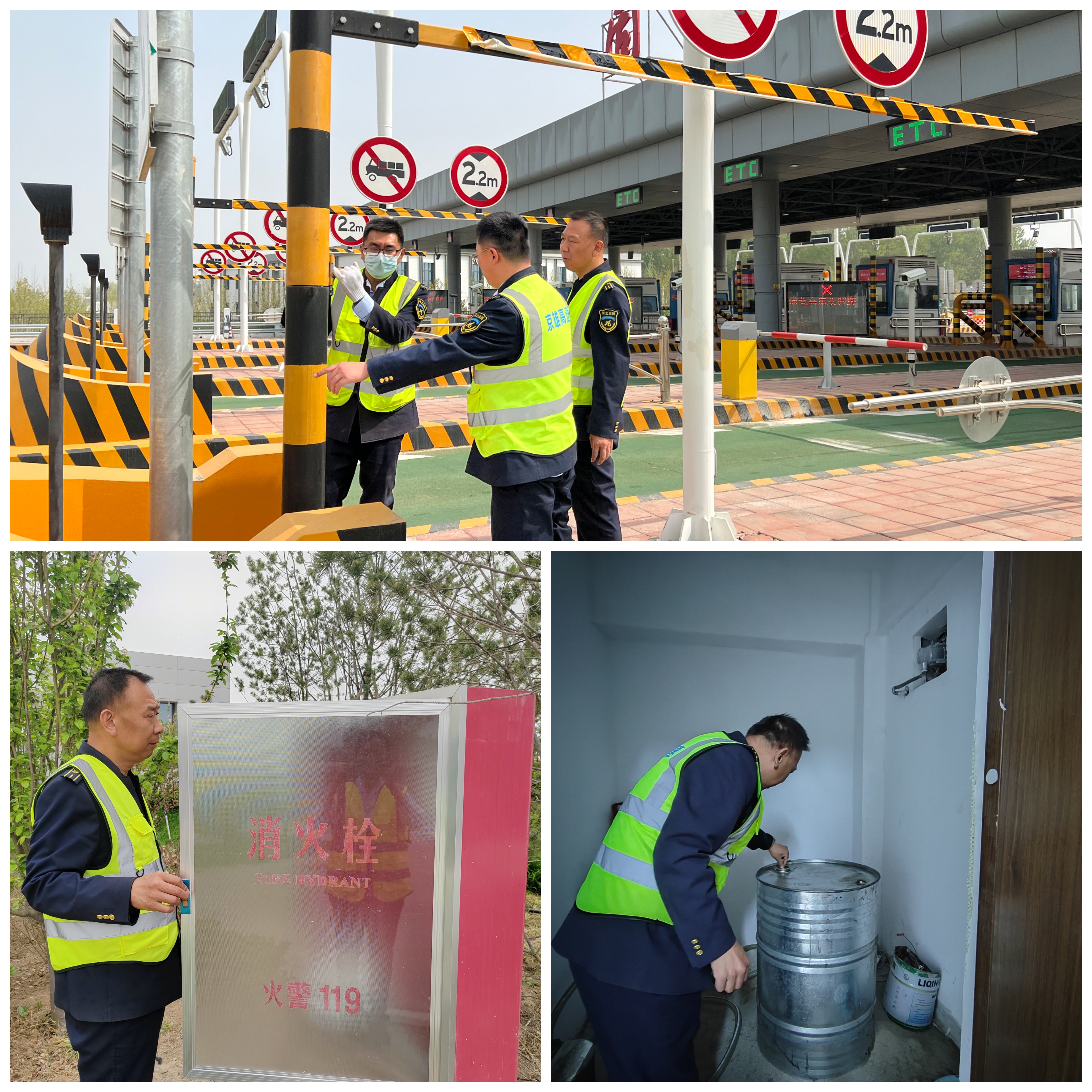 二是全面排查,筑牢安全"防护网"。固安西收费站组织专人对收费广场、岗亭、机电设备等重点区域进行全方位排查。对收费棚顶、标识标牌、宣传栏等易受大风影响的设施进行加固,防止因大风导致脱落或倾倒;对站区内的线路、设备箱等进行检查,确保设备在恶劣天气下正常运行。通过双重检查机制,既避免了设施损坏或脱落对过往车辆和人员造成的安全隐患,又保障了设备在大风环境下的稳定运行。