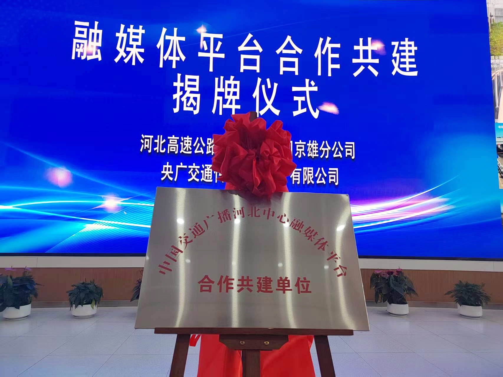 为深入贯彻落实“交通强国”战略部署,推动媒体融合与智慧交通深度赋能,4月27日,河北高速集团京雄分公司与央广交通传媒(河北)有限公司在京雄高速指挥调度中心举行“融媒体平台合作共建单位”揭牌仪式。京雄分公司党委书记、总经理高建国,央广交通传媒(河北)有限公司总经理石磊,双方领导班子成员出席活动。