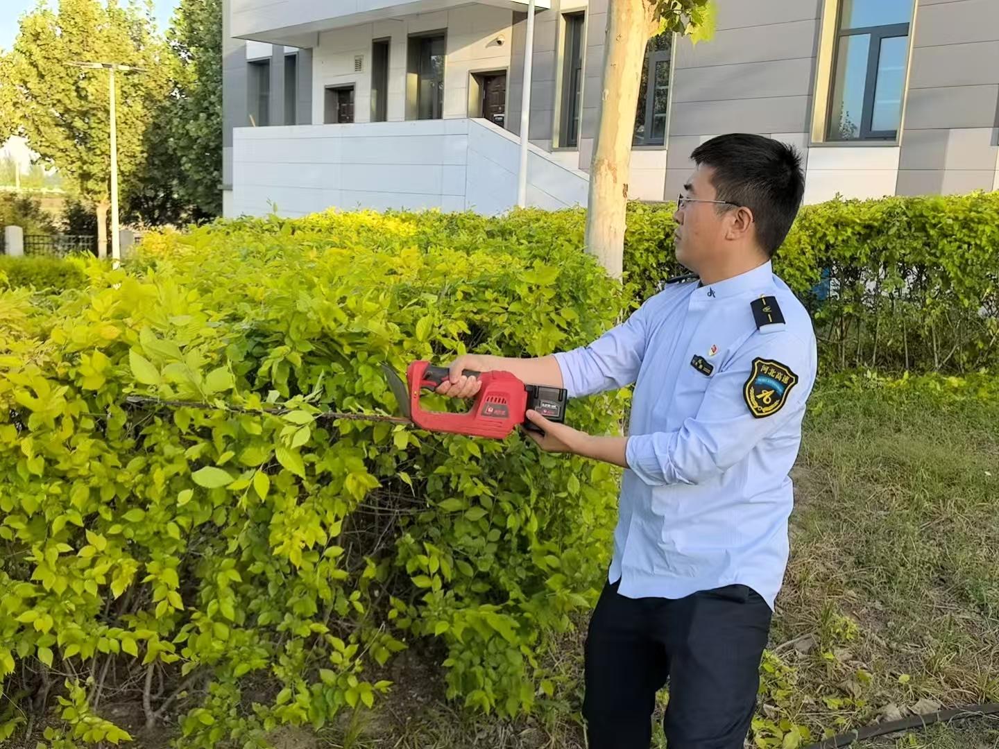 随着春天的脚步远去,收费站内的绿植肆意生长,原本规整有序的绿化区域渐渐变得杂乱无章。疯长的枝叶相互交织,杂草也在绿植间肆意蔓延,严重影响了站容站貌。为解决这一问题,收费站主要负责人以身作则,带领在站职工利用业余时间,投身到站区院落绿植的全面整理工作中。活动中大家辛勤劳作,分工明确,有的手持割草机,熟练修剪灌木丛;有的细心清理绿化带中杂草。经过大家的努力,整个站区面貌焕然一新,仿佛换上了一件崭新的绿色衣裳,处处洋溢着生机与活力。